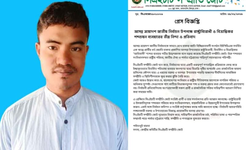 প্রেস বিজ্ঞপ্তি আসন্ন ত্রয়োদশ জাতীয় নির্বাচন উপলক্ষে রাষ্ট্রবিরোধী ও বিভ্রান্তিকর শব্দচয়ন ব্যবহারের তীব্র নিন্দা ও প্রতিবাদ