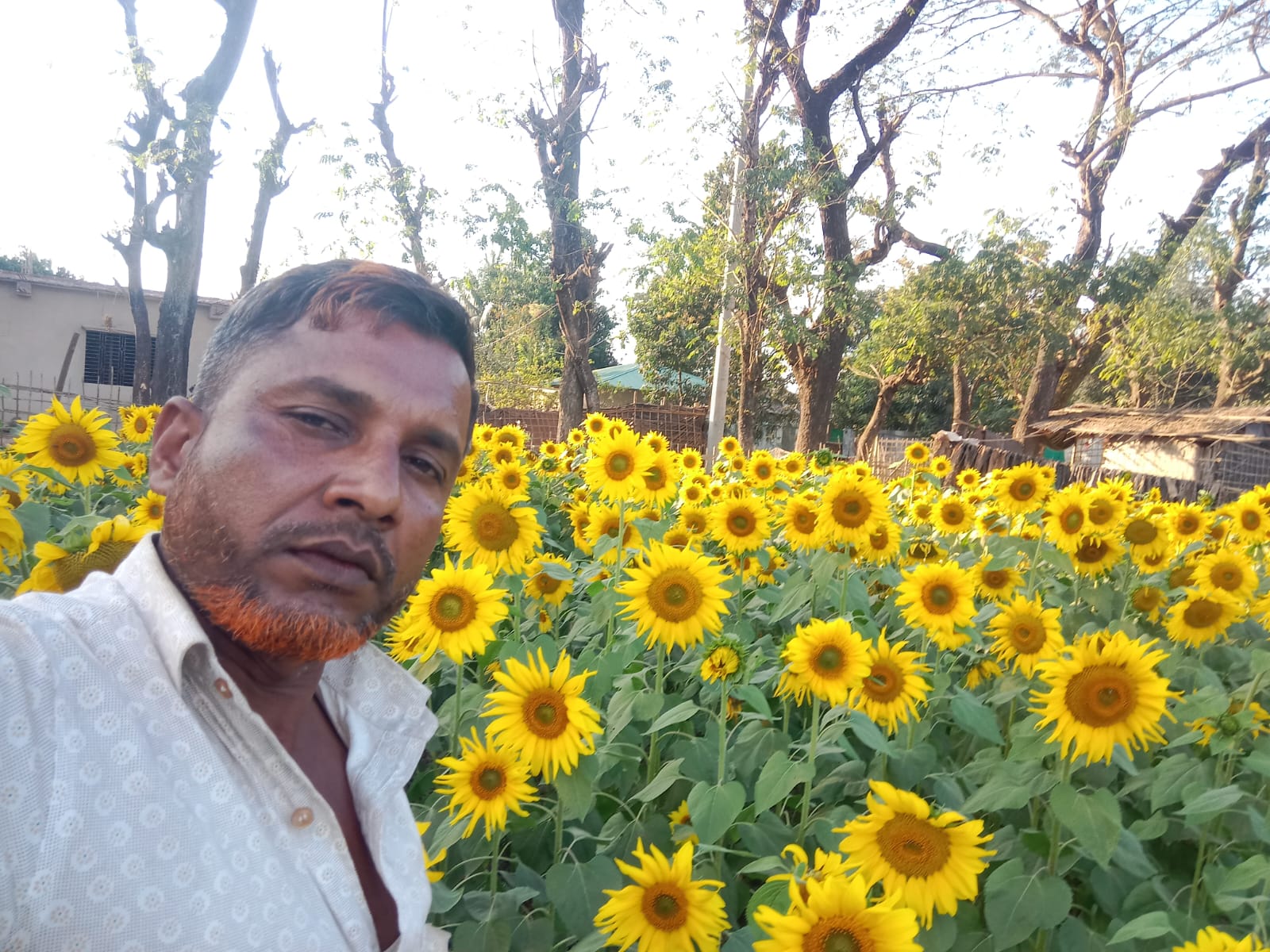 আলীকদমে তামাক ছেড়ে সূর্যমুখী ফুলের চাষে সফল কৃষক সিরাজুল ইসলাম।