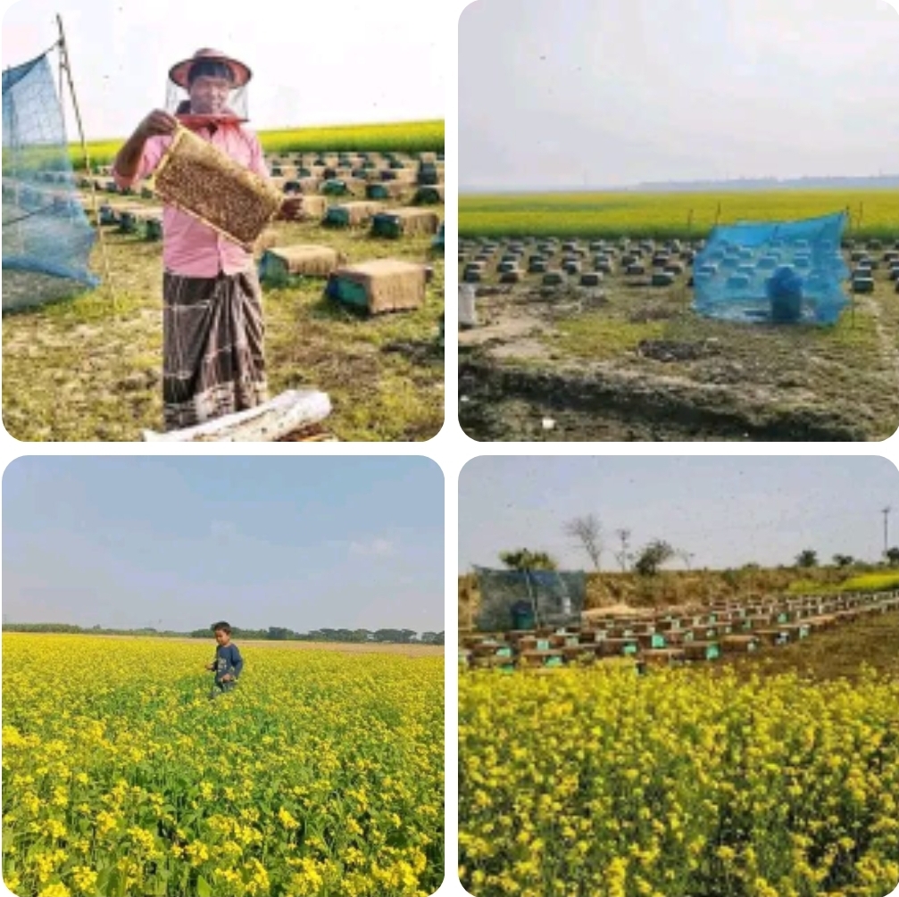 পাবনার ঈশ্বরদীতে সরিষা ক্ষেতে ব্যস্ত মৌচাষিরা, কোটি টাকার মধু উৎপাদনের সম্ভাবনা |