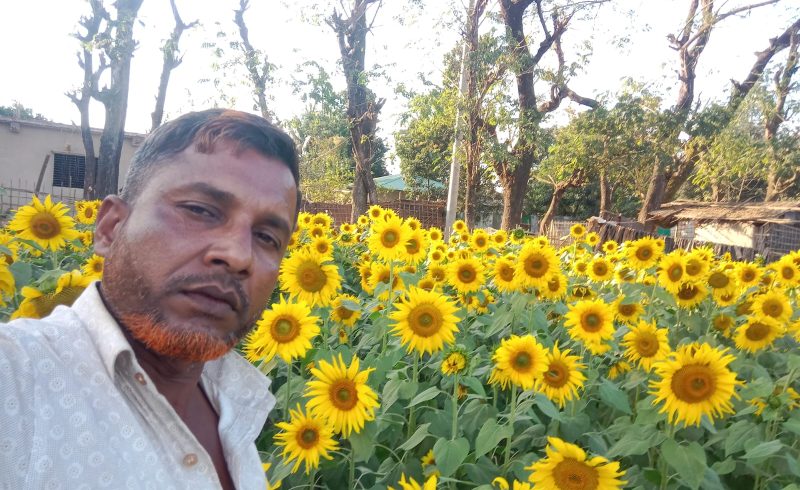 আলীকদমে তামাক ছেড়ে সূর্যমুখী ফুলের চাষে সফল কৃষক সিরাজুল ইসলাম।