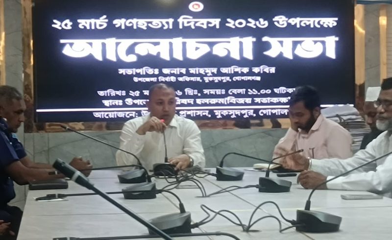 মুকসুদপুর উপজেলা প্রশাসনের আয়োজনে ২৫ শে মার্চ গণহত্যা দিবস ও আলোচনা সভা অনুষ্ঠিত